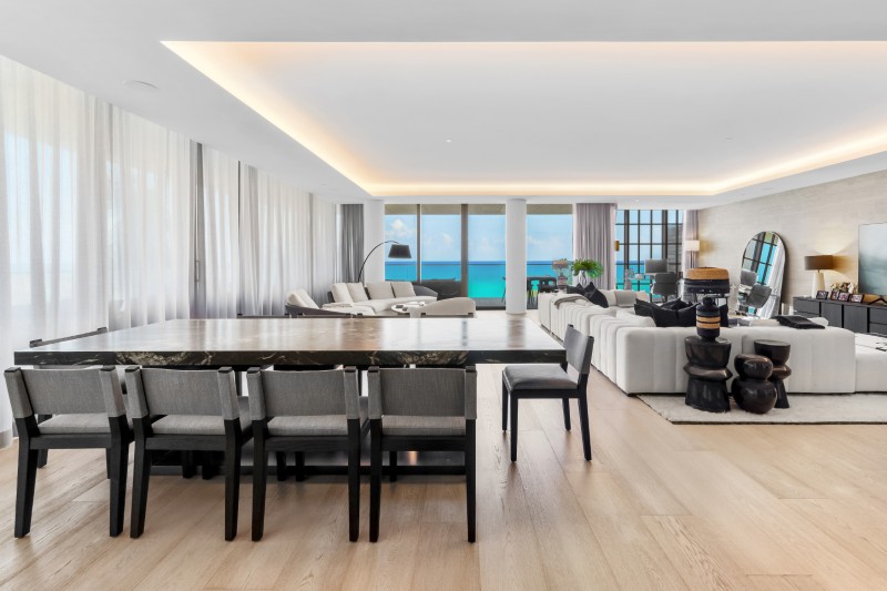 The space is sized for both lounging and entertaining, with unobstructed views of the Atlantic serving as the backdrop.