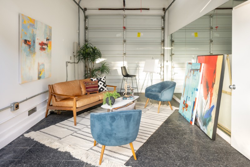 В главной комнате установлены динамики объемного звучания студийного качества, изготовленный на заказ кленовый AV-шкаф, а также скрытый киноэкран и синий экран. для видеоработы. Даже журнальный столик одновременно служит проектором и скамьей, превращая повседневную мебель в инструменты художественного творчества.