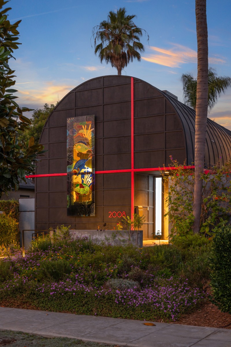 Дом басиста RHCP Фли — это ретро-футуристический комплекс на вершине холма с семигранной крышей.