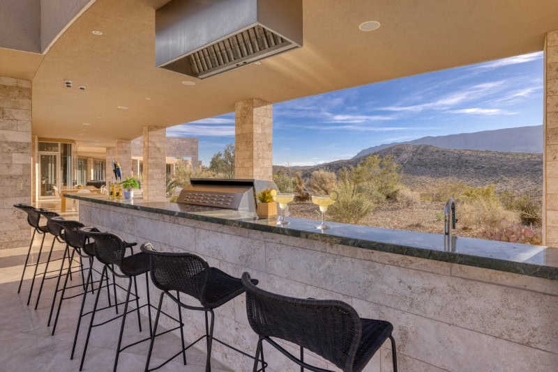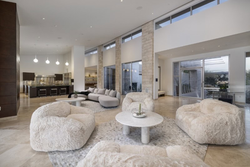Listed with Kristen Routh-Silberman of Douglas Elliman, the estate sits within one of Summerlin’s most exclusive enclaves, framed by the mountains of Red Rock Canyon.