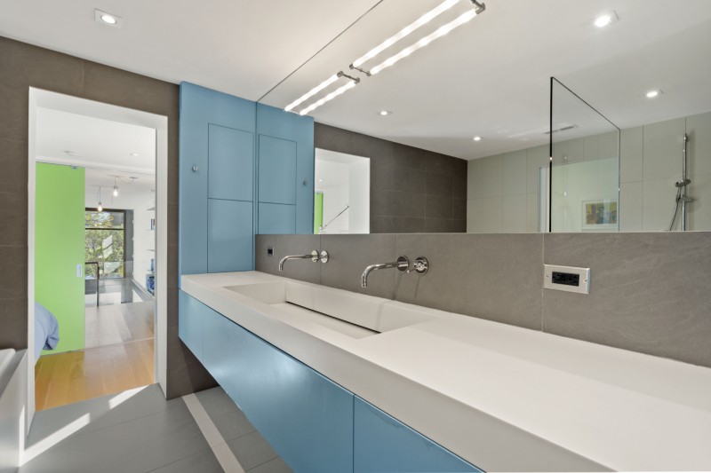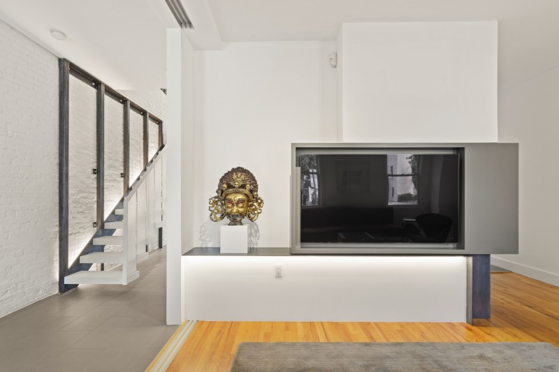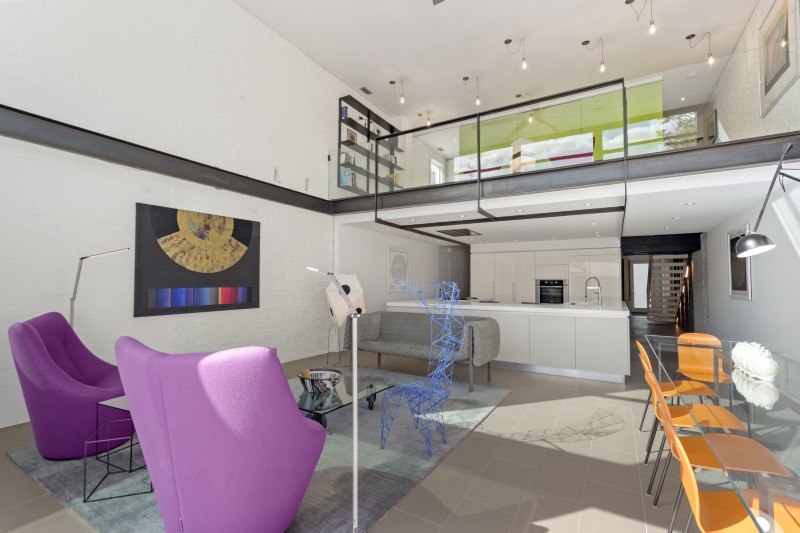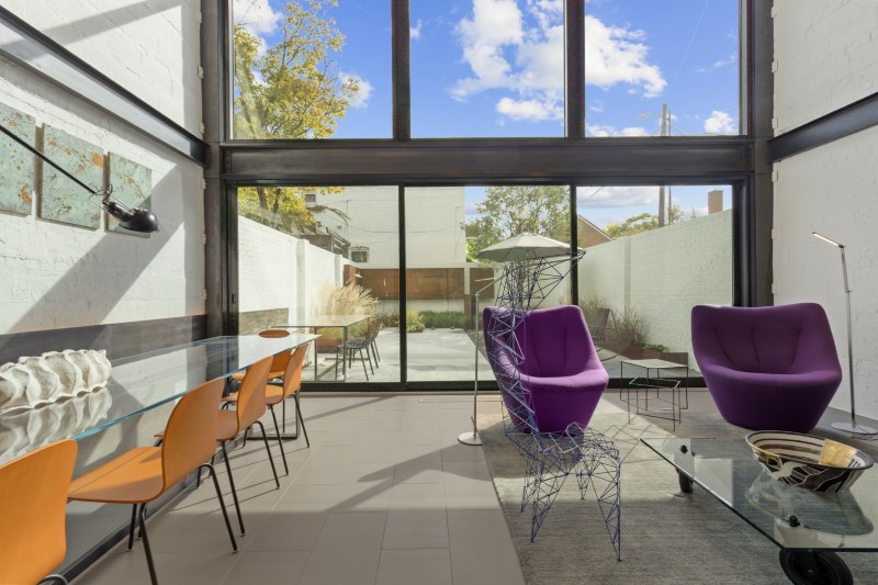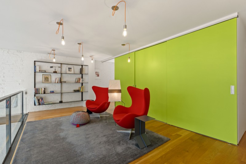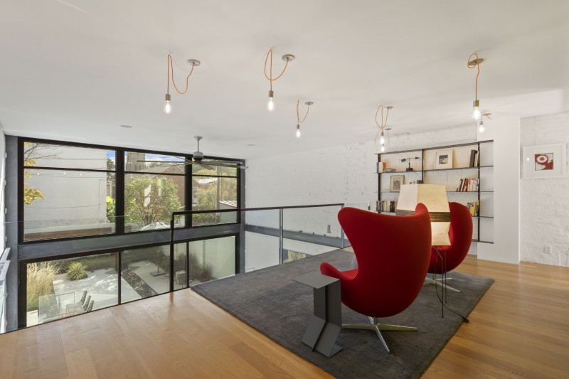 Внутри открывается 6-метровое пространство с парящими объемами и чистым, словно галерея, пространством. Реновация отдаёт предпочтение функциональному, целенаправленному дизайну: большие общественные пространства, когда они нужны, и более укромные уголки, когда они не нужны.