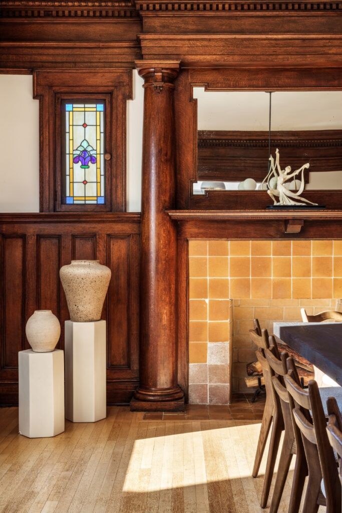 The listing highlights stained glass and carved oak millwork, and that’s where the home’s personality really lives: in the details that are too specific to replicate without spending a small fortune today.