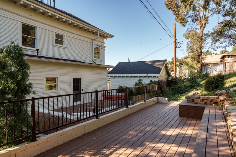 The home sits on more than half an acre, with multiple outdoor decks and terraces that create a private hilltop compound feel — rare scale for a residential property this close to the city.