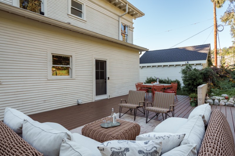 Instead, the property unfolds across multiple decks and terraces for dining, lounging, and entertaining — spaces that allow the home to function like a true hillside retreat.