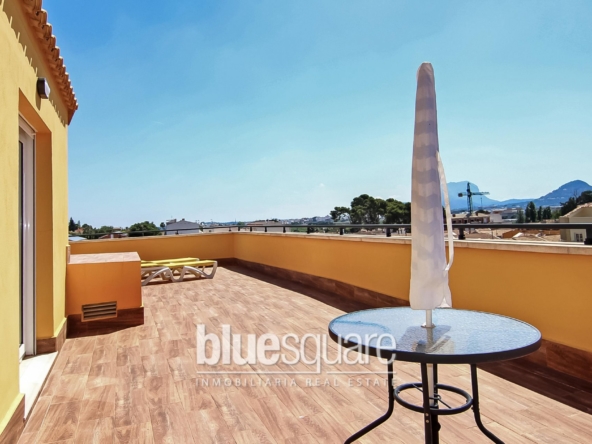 Общая площадь 124 кв.м. Жилая площадь – 74 кв.м. Два этажа. На первом этаже просторный холл с выходом на террасу 10 кв.м, отдельная оборудованная кухня со встроенной бытовой техникой и санузел. На втором этаже 3 спальни, из 2 есть выход на балкон, третья комната немного меньше остальных, полноценный санузел и выход на мансарду с видом на море и окрестности. Кондиционер. Встроенные шкафы. Окна выходят на северо-запад. Общий бассейн.