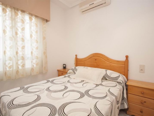 Общая площадь 44 кв.м. Второй этаж. В квартире одна спальня, одна ванная комната, гостиная-столовая, американская кухня, терраса 4 кв.м., встроенные шкафы, кондиционер. Окна выходят на север. Квартира в хорошем состоянии. Общий бассейн.