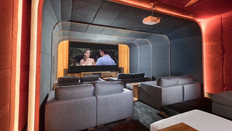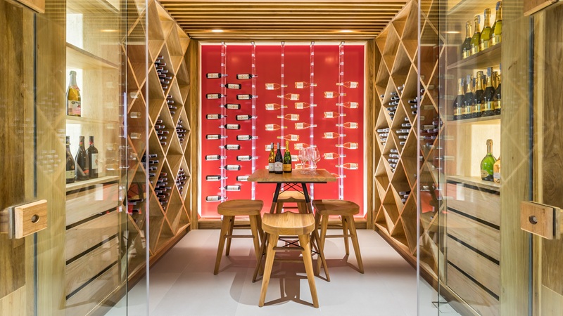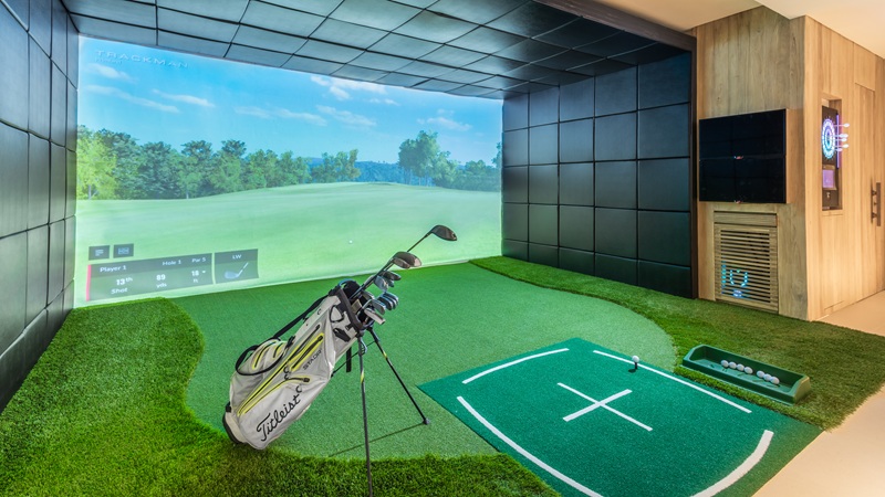 Игровая комната также располагает к развлечениям — представьте себе симулятор гольфа и даже небольшой уголок для дегустации в стиле винного погреба.