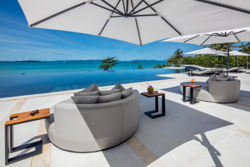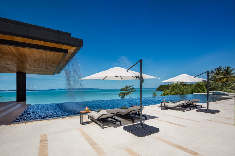 На площади в 4000 кв. м. вилла имеет несколько террас, террасы, водопад, лужайка у бассейна и открытая беседка, где можно пообедать на свежем воздухе. Лаунж с видом на закат расположен всего в нескольких шагах от бассейна, а бар на крыше становится центром вечерней жизни.