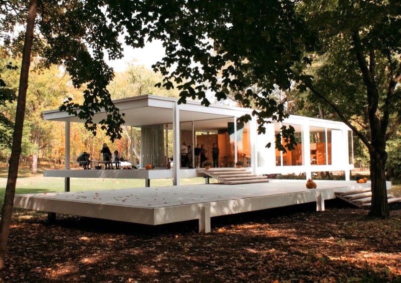 The Farnsworth House, designed by Ludwig Mies van der Rohe, is one of the purest expressions of modernist philosophy.