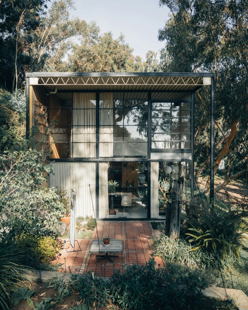 The Eames House, also known as Case Study House No. 8, was completed in 1949 by Charles Eames and Ray Eames.