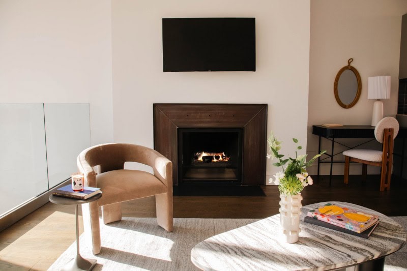 Just beyond the suite sits a rooftop terrace with a wet bar and gas fireplace, turning the top floor into a private urban retreat ideal for evening entertaining or quiet mornings above the city.