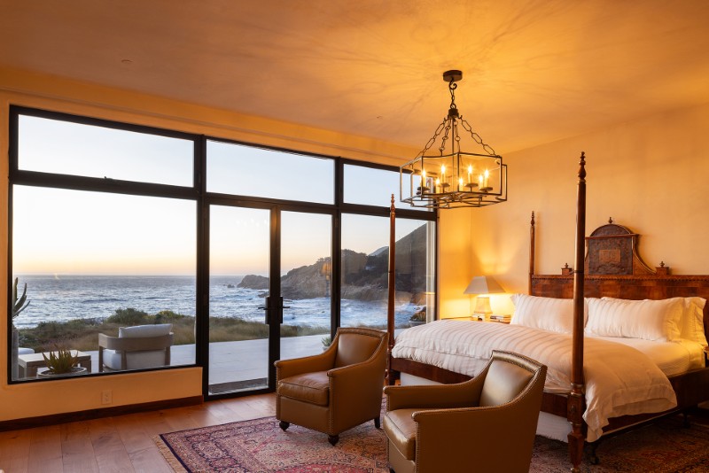 The coastline here is raw and restless, with steep drops, crashing surf, and uninterrupted views that stretch south toward Big Sur and west into open water. It’s a setting that demands restraint rather than excess — and the rebuilt residence reflects that philosophy throughout.