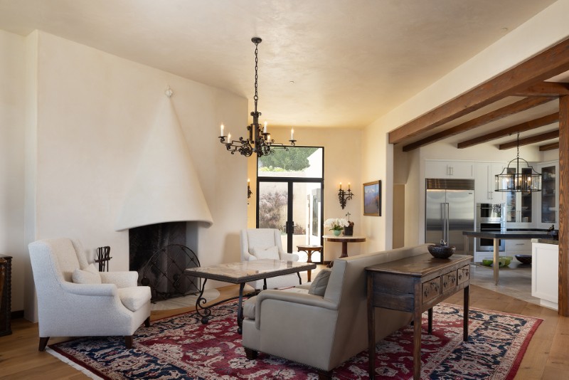 Carmel’s coastal climate is famously unpredictable, and the home is equipped accordingly. Five fireplaces are spread throughout the interior, complementing the radiant floor system and creating warmth during foggy evenings and cooler seasons.