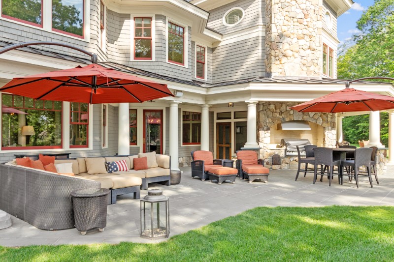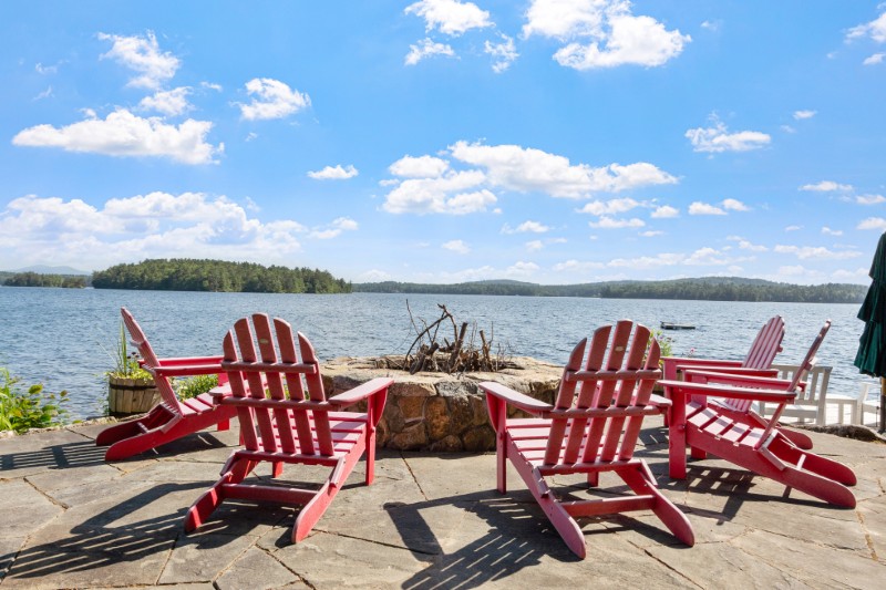 Expansive lakeside patios take in the wide water views, providing the perfect setting for summer dinners or quiet mornings with a cup of coffee.