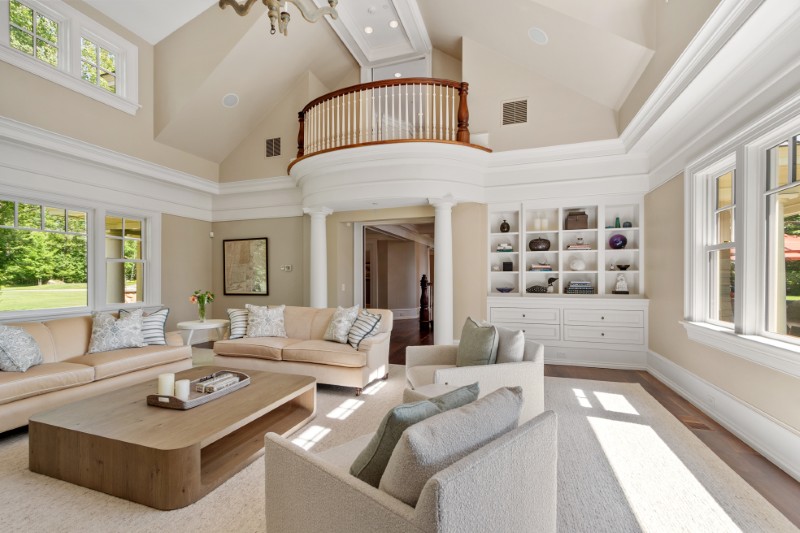 Every corner of the home has been finished to an exacting standard, from the custom doors to the ceiling treatments that mirror the flow of the lake just outside.