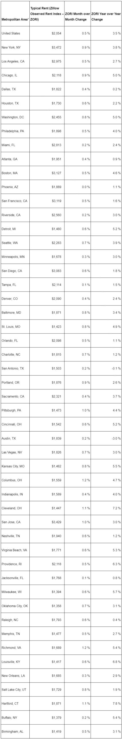 Nationally, the typical rent is $2,054, according to ZORI, reflecting a 3.5% increase from last year and marking the fastest annual growth since last July 2023.