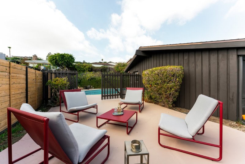 A bonus side yard adds another layer of living space, complete with a sitting area oriented directly toward downtown Los Angeles — an intentional design choice that feels tailor-made for sunrise coffees or sunset gatherings.