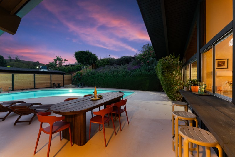 - Key features: Saltwater pool, panoramic views, solar panels, vaulted ceilings, original mid-century details, modern upgrades